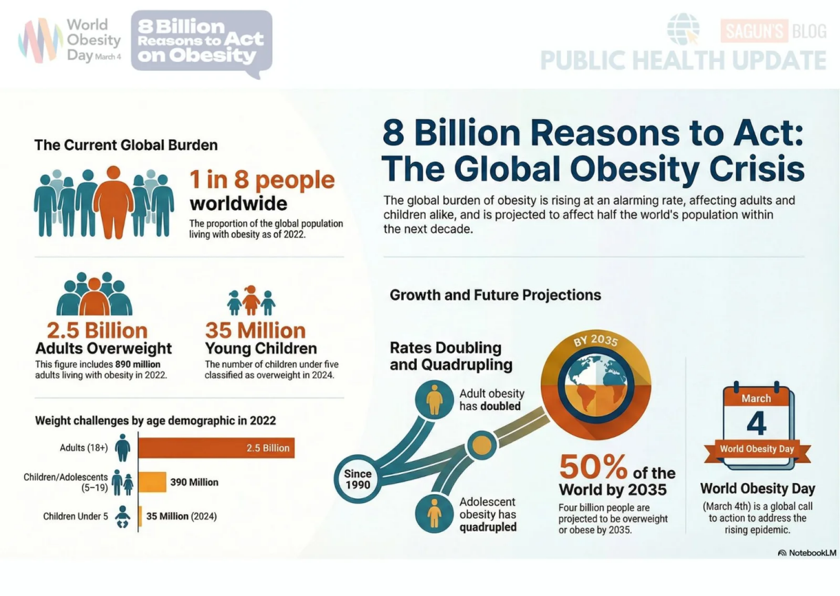今年的世界肥胖日主题——“8 Billion Reasons To Act on Obesity”(80亿个理由行动起来应对肥胖),直指问题的核心:肥胖不仅是个体健康的威胁,更是全球系统性失灵的指标。