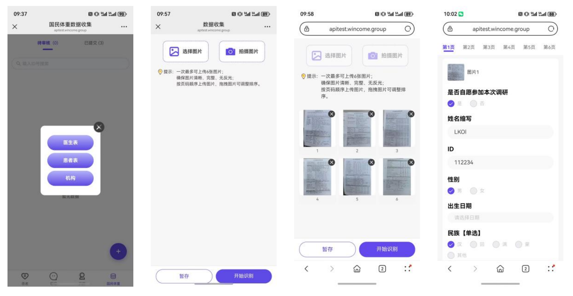 本次调研涉及机构表、患者表、医生表三类结构化CRF表单,数据维度广、信息密度高,传统人工逐项录入既耗时又易出错。为此,营康科技将AI图像智能识别引擎深度适配本项目表单结构,实现了从“纸质填写”到“数字入库”的一站式自动化转化:
